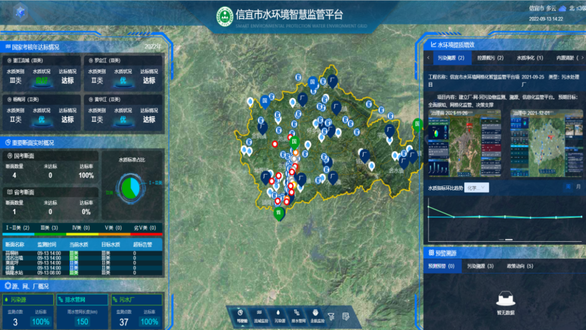 信宜市“源‑网‑厂‑河”智慧监管平台实现流域动态监管,支撑科学决策。
